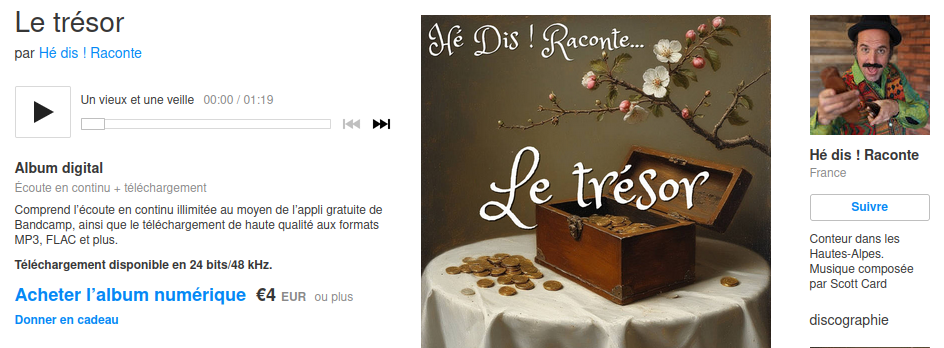 « Une émission d’environ 1 heure tous les derniers mardi de chaque mois à 21h. Avec une thématique différente selon les opportunités : rencontre avec un musicien, saison… Si pour moi le conte fait partie du spectacle vivant, je prend ces émissions de radio comme un nouvel exercice, prenant énormément de plaisir à travailler en amont pour préparer ces émissions. Vous y entendrez des histoires que je raconte depuis longtemps ou de tout nouveaux qui me permettent d’étoffer mon répertoire. Ces histoires sont évidement revues dans le style hédis raconte. Merci Ktb Radio : web radio basée à Serres »
